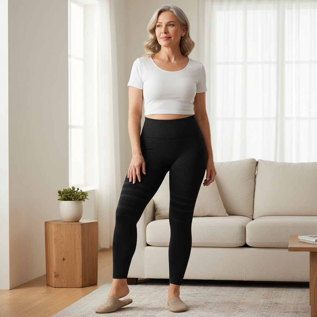 Un legging sculptant à la compression ciblée, conçu pour lisser visiblement la silhouette et offrir un maintien confortable tout au long de la journée.